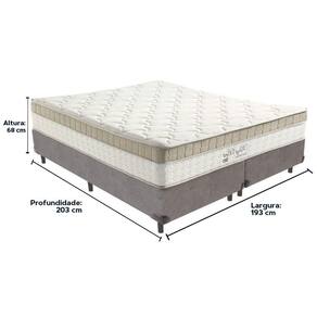 Modelo: King Best 33 Marca: Anjos Tamanho: King Dimensões: 193x203X33 (Largura x Comprimento x Altura) Conforto: Intermediário Sistema: Molas Ensacadas Pillow: Euro Pillow Peso Máximo recomendado: 130 kg (Por pessoa) Proteções: Antiácaro, antialérgico, antifungo, antimofo Garantia: 1 ano pelo Fabricante