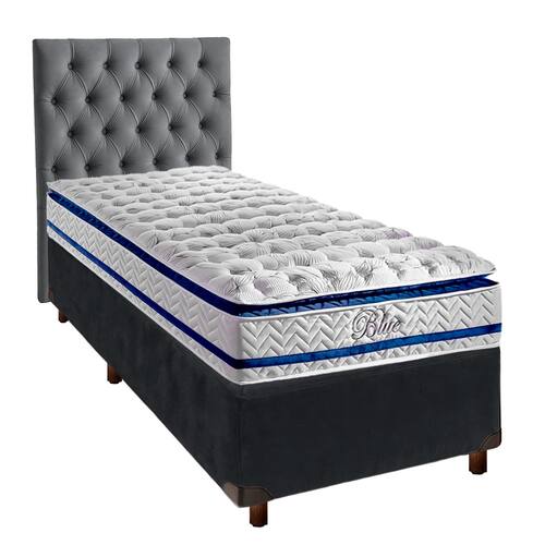 Cama + Box Cinza e Colchão Molas Ensacadas Solteiro - Blue Paropas + Cabeceira