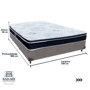 O conforto que sua casa precisa e a qualidade que você merece está na Kazamix!O Colchão Orthosono One Face une conforto firme e durabilidade com espuma D33 de alta qualidade. Com Euro Pillow, oferece uma camada extra de conforto para noites de sono ainda mais relaxantes. O revestimento em poliéster com bordado contínuo proporciona maciez e elegância, enquanto a tecnologia No Turn dispensa a necessidade de virar o colchão. Conta com base antiderrapante para maior estabilidade e tratamento antiácaro e antifungo, garantindo proteção contra alérgenos. Produzido com EPS, contribui para melhor isolamento térmico e maior leveza do produto. Certificado pelo INMETRO e fabricado com materiais sustentáveis, é a escolha ideal para quem busca qualidade e bem-estar.Modelo: Orthosono Marca: AnjosTamanho: CasalDimensões: 138x188X18 (Largura x Comprimento x Altura)Conforto: FirmeSistema: Espuma D33Pillow: Euro PillowPeso Máximo recomendado: 140 kg (Por pessoa)Proteções: Antiácaro, antialérgico, antifungo, antimofoGarantia: 1 ano pelo FabricanteO conforto que sua casa precisa e a qualidade que você merece está na Kazamix!Eleve o conforto e a sofisticação do seu quarto com a Cama Box!Produzida em madeira de reflorestamento reforçada, a Cama Box combina qualidade, durabilidade e um design elegante, que confere leveza e modernidade ao seu dormitório. Sua estrutura robusta suporta até 150 kg por pessoa, garantindo a sustentação perfeita para o colchão e prolongando a vida útil do produto.Com uma altura ergonômica, ela oferece maior conforto ao deitar e levantar, enquanto o acabamento de alta qualidade se adapta a qualquer estilo de decoração, unindo praticidade e estilo.Não perca tempo! Adquira agora mesmo a sua Cama Box e transforme seu dormitório com conforto e elegância.Marca: KazaMixModelo: BoxCor do Box: CinzaTamanho: CasalDimensões: 138X188X35 (Largura x Comprimento x Altura) Estrutura: MadeiraPeso máximo recomendado: 150 kg (Por Pessoa)Altura do Box: 25 cm Altura dos Pés: 10 cm Altura total: 35 cm Garantia: 03 mesesSelo Ecologicamente CorretoAtenção: Antes de finalizar sua compra, certifique-se de que as dimensões do produto sejam adequadas para serem transportadas pelos elevadores, portas, escadas e corredores de sua residência. Ressaltamos que não nos responsabilizamos pelo transporte do produto por meios específicos, como escadas, guinchos ou içamentos.
