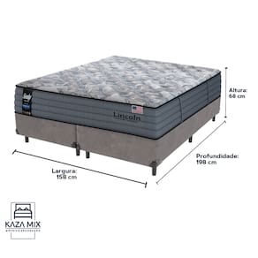 Bem-vindo(a) ao nosso catálogo! Apresentamos a você uma descrição completa sobre esse produto: A marca SealyEntre as personalidades que usam e usaram os colchões da marca Sealy estão a cantora Adele, Rainha Elizabeth II, a apresentadora Ellen DeGeneres e o jogador de basquete LeBron James. Atendendo também os hotéis da Disney, Copacabana Palace, Hard Rock Hotels e outros. Referência na fabricação de colchões de alta qualidade, a empresa foi fundada em 1881. Investindo em tecnologia de ponta e materiais premium para produzir produtos duráveis e confortáveis, é reconhecida por diversos consumidores famosos em todo o mundo. Modelo: LincolnNível de Conforto: MacioSuporte de peso: 300 quilos (150kg por pessoa)Molas: Molas Ensacadas DSS Espuma: Espuma Hipersoft GelAltura: 33 cm Tecido: Malha Margan 365 gO Colchão Lincoln Sealy é o ápice do conforto e sofisticação, criado para quem busca o melhor em qualidade de sono. Este colchão de 33 cm de altura é uma verdadeira obra-prima, combinando a renomada tecnologia de Molas Ensacadas DSS com o suporte adicional da tecnologia Posturepedic. Essa combinação oferece um alinhamento perfeito da coluna e alívio dos pontos de pressão, proporcionando uma experiência de sono revitalizante e tranquila. Com uma camada de espuma Hipersoft Gel, o Colchão Lincoln Sealy eleva o conforto a um novo patamar, garantindo uma sensação de maciez e ajudando a dissipar o calor, mantendo a temperatura ideal durante toda a noite. O tampo em Malha Margan, com 365 g/m², adiciona um toque de frescor e elegância, enquanto a lateral em Jacquard Plano reforça a durabilidade e o visual sofisticado. Além disso, o colchão é equipado com uma camada adicional de fibra siliconada e espuma Soft, com um reforço estratégico no terço central, garantindo suporte extra e conforto incomparável. As bordas firmes ampliam a área útil do colchão, evitando deformações e garantindo que cada centímetro seja aproveitado ao máximo. Com capacidade de suporte de até 150 kg por pessoa, o Colchão Lincoln Sealy não é apenas sinônimo de conforto, mas também de durabilidade e resistência. Eleve sua experiência de sono com este colchão, que combina tecnologia avançada, materiais de alta qualidade e um design elegante, transformando suas noites em momentos de descanso verdadeiramente restauradores. Além de tudo, esse produto acompanha a Cama Box da Kaza Mix e assim se torna um conjunto perfeito para o seu quarto! Marca: Kaza MixCor do Box: CinzaTamanho: QueenMaterial dos pés: MadeiraEstrutura: MadeiraPeso máximo recomendado: Até 150kg de cada ladoLargura: 158cmComprimento: 198cmAltura dos pés: 12cmAltura total: 42cmGarantia: 03 mesesSelo Ecologicamente CorretoAtenção: - Antes de finalizar sua compra, recomendamos que verifique se as dimensões do produto são adequadas para serem transportadas pelos elevadores, portas, escadas e corredores de sua residência. Ressaltamos que não nos responsabilizamos pelo transporte do produto por meios específicos, como escadas, guinchos ou içamentos. - É possível que hajam leves variações de cor de acordo com o dispositivo que está sendo utilizado como smartphones, computadores, monitores e outros.