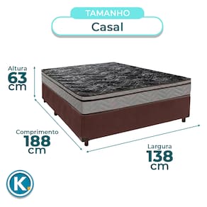 Conjunto Casal Colchão Conforto + Cama BoxColchão Casal com 17cm de altura, ideal para uso diário e confortávelRevestimento em poliéster resistente com toque suave e fácil de limparSuporte de até 80kg, indicado para crianças, adolescentes e adultos levesBase box Casal ideal para otimizar o espaço do quarto com praticidadeRevestimento em Veludo: fácil de limpar e com visual modernoEstrutura firme e resistente com suporte para até 150kgFicha Técnica Colchão:Modelo: ConfortoMarca: ParopasTamanho: CasalTecido: PoliésterLargura: 138cmComprimento: 188cmAltura: 25cmSuporte de Peso: 80KgGarantia: 3 MesesFicha Técnica Cama Box:Modelo: UniversalMarca: NatureTamanho: CasalTecido: VeludoLargura: 138cmComprimento: 188cmAltura: 25cmAltura dos Pés: 13cmMaterial dos Pés: MadeiraSuporte de Peso: 150KgPeso: 27KgGarantia: 3 MesesAtenção:Antes da compra certifique-se de que o produto passa por elevadores, portas e corredores.As transportadoras não realizam entregas por escadas ou içamentos.Caso o item não caiba no elevador, a entrega será considerada concluída no térreo do prédio.A cor e tonalidade do produto pode variar de acordo com o dispositivo que o usuário está acessando.