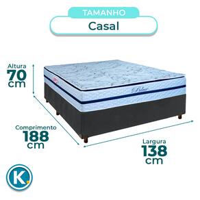 Conjunto Casal Colchão Blue + Cama BoxColchão Casal com 32cm de altura, oferecendo conforto elevado e presença imponenteRevestido em poliéster resistente, com toque agradável e ótima durabilidadeSuporte para até 150kg, ideal para quem busca firmeza e resistênciaBase box Casal ideal para otimizar o espaço do quarto com praticidadeRevestimento em Veludo: fácil de limpar e com visual modernoEstrutura firme e resistente com suporte para até 150kgFicha Técnica Colchão:Modelo: BlueMarca: ParopasTamanho: CasalTecido: PoliésterLargura: 138cmComprimento: 188cmAltura: 32cmSuporte de Peso: 150KgGarantia: 3 MesesFicha Técnica Cama Box:Modelo: UniversalMarca: NatureTamanho: CasalTecido: VeludoLargura: 138cmComprimento: 188cmAltura: 25cmAltura dos Pés: 13cmMaterial dos Pés: MadeiraSuporte de Peso: 150KgPeso: 27KgGarantia: 3 MesesAtenção:Antes da compra certifique-se de que o produto passa por elevadores, portas e corredores.As transportadoras não realizam entregas por escadas ou içamentos.Caso o item não caiba no elevador, a entrega será considerada concluída no térreo do prédio.A cor e tonalidade do produto pode variar de acordo com o dispositivo que o usuário está acessando.