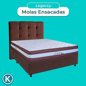 Cama Box + Colchão Casal Molas Ensacadas Legaccy Paropas + Cabeceira Estofada - Marrom