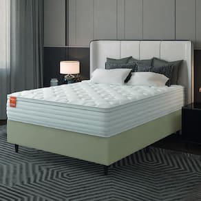 REVESTIMENTO INTERIOR: Molejo estrutural em molas ensacadas individualmente, que permitem que o colchão suporte até 130kg por pessoa, oferecendo conforto e estabilidade durante o sono.