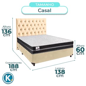 Conjunto Casal Colchão Bogota + Cama BoxColchão Casal com 22cm de altura, ideal para conforto e praticidadeRevestimento em Jacquard e Poliéster: beleza, resistência e toque suaveSuporte de até 150kg, ideal para diferentes biotipos com ótima firmezaBase box Casal ideal para otimizar o espaço do quarto com praticidadeRevestimento em Veludo: fácil de limpar e com visual modernoEstrutura firme e resistente com suporte para até 150kgFicha Técnica Colchão:Modelo: BogotaMarca: InducolTamanho: CasalTecido: Jacquard/PoliésterLargura: 138cmComprimento: 188cmAltura: 22cmSuporte de Peso: 150KgGarantia: 3 MesesFicha Técnica Cama Box:Modelo: UniversalMarca: NatureTamanho: CasalTecido: VeludoLargura: 138cmComprimento: 188cmAltura: 25cmAltura dos Pés: 13cmMaterial dos Pés: MadeiraSuporte de Peso: 150KgPeso: 27KgGarantia: 3 MesesAtenção:Antes da compra certifique-se de que o produto passa por elevadores, portas e corredores.As transportadoras não realizam entregas por escadas ou içamentos.Caso o item não caiba no elevador, a entrega será considerada concluída no térreo do prédio.A cor e tonalidade do produto pode variar de acordo com o dispositivo que o usuário está acessando.