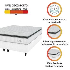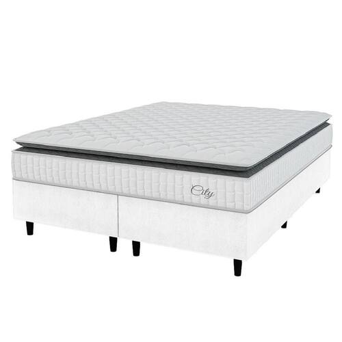 MODELO: Cama Box Colchão Casal Queen Molas Ensacadas City Pillow Top 158x188x61cm Linho