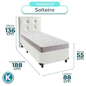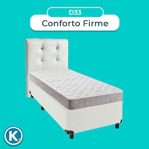 Cama Box + Colchão Solteiro D33 D33 Inducol + Cabeceira Estofada - Branco | Marrom