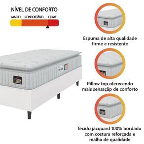 MODELO: Cama Box Colchão Solteiro Espuma D33 Vangogh Pillow Top 88x188x67cm Linho