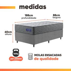 REVESTIMENTO INTERNO: Estrutura de molas ensacadas, que suportam até 160kg por pessoa, garantindo conforto e estabilidade ao dormir