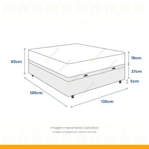 - Dimensões do produto (largura x comprimento x altura): 138x188x42cm.