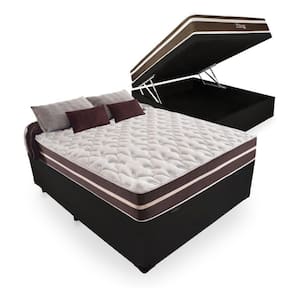 Cama Box Com Baú Casal + Colchão De Molas - Anjos - Classic Superlastic 138cm - Preto
