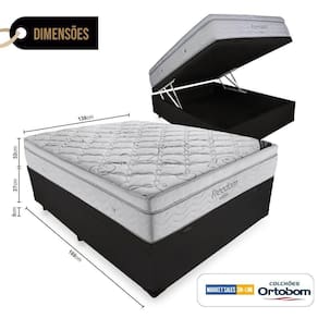 Cama Box Com Baú Casal + Colchão De Molas Ensacadas - Ortobom - Freedom 138cm - Preto