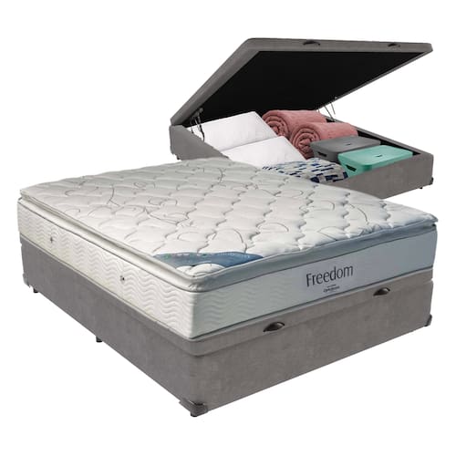 O colchão Freedom possui Molas Ensacadas e conta com uma camada de espuma viscoelástica D33, que se adapta ao contorno do corpo, proporcionando uma sensação de conforto e aconchego, além de auxiliar na circulação sanguínea.
