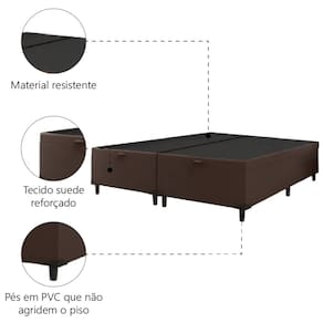 A Cama Box Bipartida com Baú é a escolha ideal para quem busca praticidade, conforto e um toque moderno no quarto. Com estrutura resistente em madeira de eucalipto e pinus, ela oferece durabilidade e segurança, além de um belo acabamento em tecido suede, fácil de limpar e extremamente elegante. Seu sistema de abertura fácil do baú permite um aproveitamento inteligente do espaço, ideal para guardar roupas, travesseiros, edredons e objetos pessoais, mantendo tudo sempre organizado. Por ser bipartida, também facilita o transporte e a instalação, principalmente em ambientes com espaços mais reduzidos. Além disso, acompanha jogo de pés em PVC, garantindo estabilidade e completando o visual moderno do móvel. A Cama Box com Baú é perfeita para transformar seu quarto em um ambiente mais bonito, funcional e acolhedor.