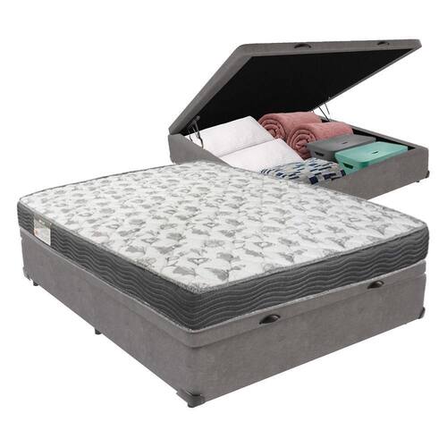Cama Box Com Baú Ortobom Iso100 Bege D33 Cinza