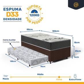- Dimensões do produto (larg. x comp. x alt.) Solteiro: 88x188x44cm;