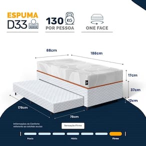 - Tipo de conforto: Extra Firme (ortopédico);
