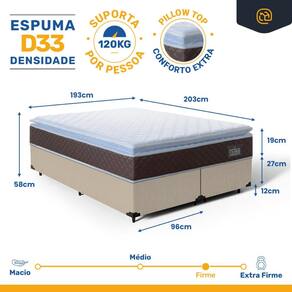 - Dimensões (larg. x comp. x alt.) Super King: 193x203x19cm.