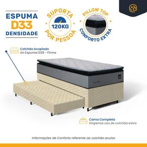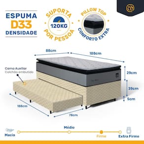 Para quem busca um descanso firme e duradouro, o colchão de espuma D33 é a escolha ideal. Com Pillow Top e tampo bordado, oferece uma camada extra de conforto e suporte, perfeita para aliviar os pontos de pressão e garantir o relaxamento ideal.