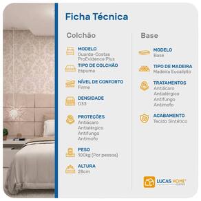 Complementando este colchão, a base box é feita de madeira tratada e revestida, suportando até 150 Kg por pessoa. Ela não só eleva seu colchão a uma altura ideal para fácil acesso, mas também estabiliza seu sono com uma fundação sólida e confiável. Esta combinação não apenas maximiza seu conforto, mas também a funcionalidade do seu espaço de descanso.