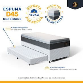 Se busca um colchão que ofereça um descanso profundamente reparador e confortável, nosso modelo com espuma D45 e pillow top é a escolha perfeita. Este colchão é ideal para quem prefere um suporte firme, mas com a suavidade adicional proporcionada pelo pillow top, garantindo uma superfície acolhedora para aliviar pontos de pressão e melhorar a qualidade do sono.
