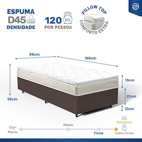 - Dimensões (larg. x comp. x alt.) Solteiro: 88x188x39cm;