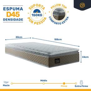 O pillow top adiciona uma camada extra de maciez, transformando cada noite em uma experiência de sono restauradora. A combinação de materiais de alta qualidade e a construção cuidadosa garantem durabilidade e conforto contínuo.