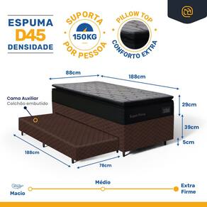- Dimensões do produto (larg. x comp. x alt.) Solteiro: 88x188x44cm;