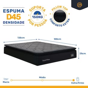 Procurando um colchão que ofereça suporte extra-firme e máxima durabilidade? Nosso modelo de Espuma D45 com Pillow Top foi desenvolvido para quem valoriza conforto e estabilidade. A densidade D45 proporciona firmeza superior, enquanto a camada extra de Pillow Top garante alívio nos pontos de pressão.
