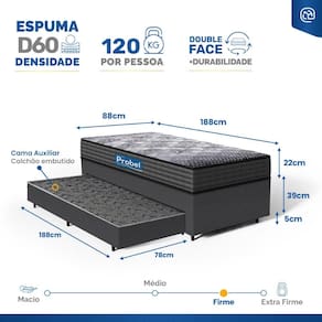 Precisa de um conjunto versátil e prático? Esta base fixa Bicama é acompanhado por um colchão auxiliar de espuma D28, proporcionando suporte firme e ortopédico para quem necessita de um descanso saudável. Este conjunto é a escolha perfeita para quem busca funcionalidade e suporte em uma única solução.