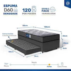 - Dimensões do produto (larg. x comp. x alt.) Solteiro: 88x188x45cm;