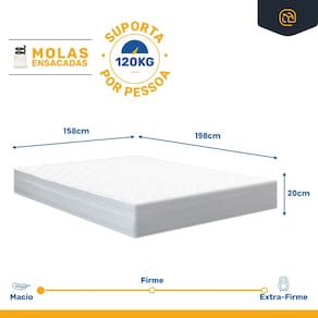 - Dimensões (larg. x comp. x alt.) 158x198x20cm.