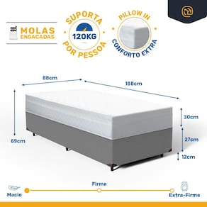 - Dimensões (larg. x comp. x alt.) Solteiro: 88x188x39cm;