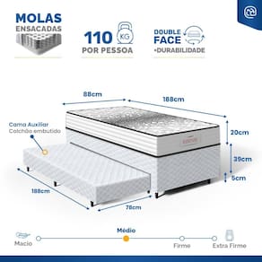 Precisa de um conjunto versátil e prático? Esta base fixa Bicama é acompanhado por um colchão auxiliar de espuma D28, proporcionando suporte firme e ortopédico para quem necessita de um descanso saudável. Este conjunto é a escolha perfeita para quem busca funcionalidade e suporte em uma única solução.
