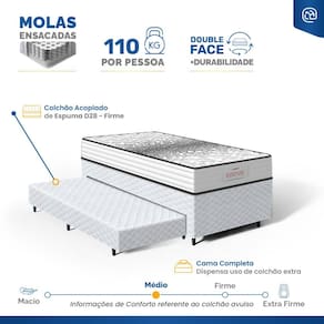 Precisa de sustentação confiável? O suporte de até 110kg por pessoa mantém o colchão estável, ideal para diferentes biotipos e o sistema Double Face permite virar o colchão e prolonga sua vida útil, mantendo o suporte para até 110kg por pessoa.