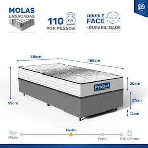 - Dimensões (larg. x comp. x alt.) Solteiro: 88x188x39cm;
