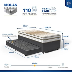 - Tipo de colchão Auxiliar: Espuma D28;