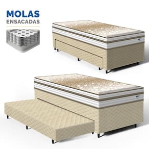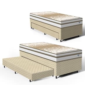 Cama Box com Colchão de Molas Ensacadas Double Face Pillow Euro Alfa Probel + Auxiliar de Espuma Unique Solteiro 88cm - Bege