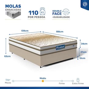 Cama Box com Colchão de Molas Ensacadas Double Face Pillow Euro Alfa Probel Casal 138cm - Bege