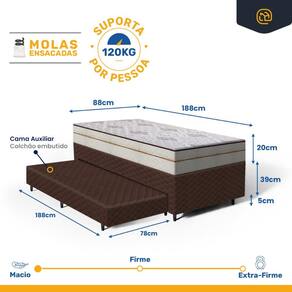 - Dimensões do produto (larg. x comp. x alt.) Solteiro: 88x188x44cm;