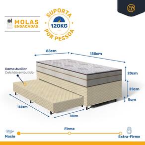 - Dimensões do produto (larg. x comp. x alt.) Solteiro: 88x188x44cm;