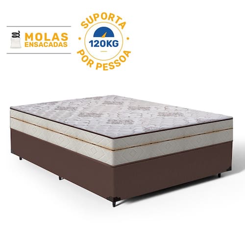 Complementando este colchão, a base box é feita de madeira tratada e revestida, suportando até 150 Kg por pessoa. Ela não só eleva seu colchão a uma altura ideal para fácil acesso, mas também estabiliza seu sono com uma fundação sólida e confiável. Esta combinação não apenas maximiza seu conforto, mas também a funcionalidade do seu espaço de descanso.