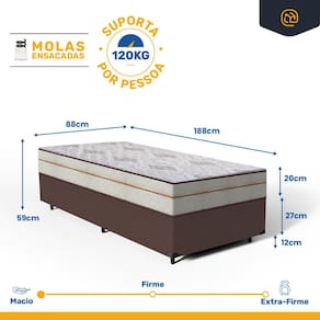 - Dimensões (larg. x comp. x alt.) Solteiro: 88x188x39cm;