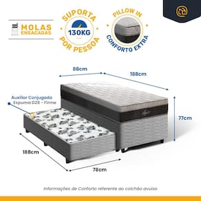 - Dimensões do produto (larg. x comp. x alt.) Solteiro: 88x188x45cm;