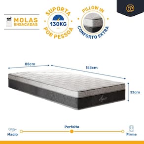 Descubra o equilíbrio perfeito entre suporte e conforto com nosso colchão de molas ensacadas, que inclui um Pillow In para uma camada extra de conforto. Este colchão é ideal para quem busca firmeza sem abrir mão do aconchego, suportando até 130 kg por pessoa.
