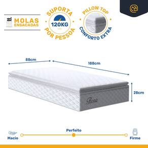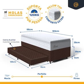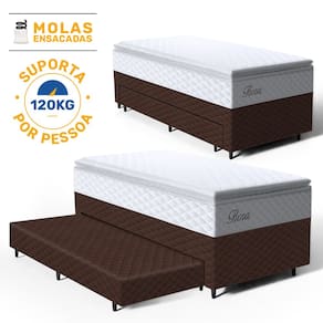 Cama Box com Colchao de Molas Ensacadas Pillow Top Flora + Auxiliar de Espuma Unique Solteiro 88cm - Marrom