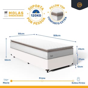 Cama Box com Colchão de Molas Ensacadas Pillow Top Neve Solteiro 88cm - Branco