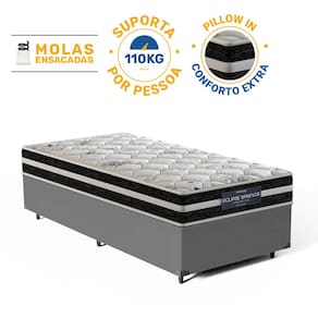 Complementando este colchão, a base box é feita de madeira tratada e revestida, suportando até 150 Kg por pessoa. Ela não só eleva seu colchão a uma altura ideal para fácil acesso, mas também estabiliza seu sono com uma fundação sólida e confiável. Esta combinação não apenas maximiza seu conforto, mas também a funcionalidade do seu espaço de descanso.