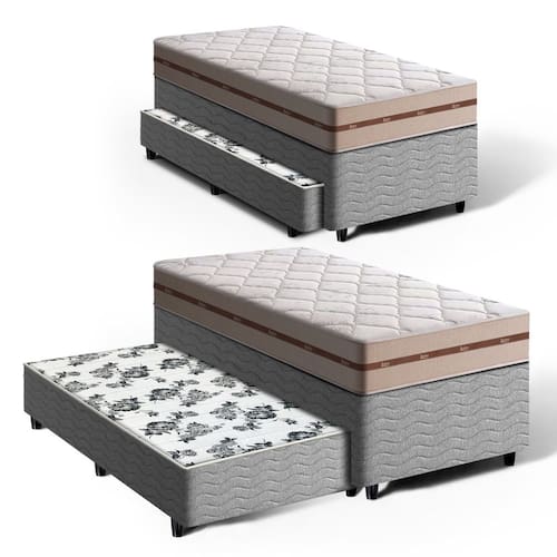 E quanto à base? Ela vem com um colchão auxiliar fixo de espuma, oferecendo um suporte firme e ortopédico para quem precisa de apoio adicional. É solução prática e completa para quem busca conforto e estilo.