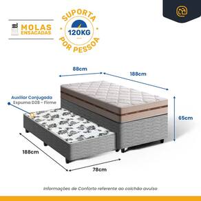 - Dimensões do produto (larg. x comp. x alt.) Solteiro: 88x188x45cm;